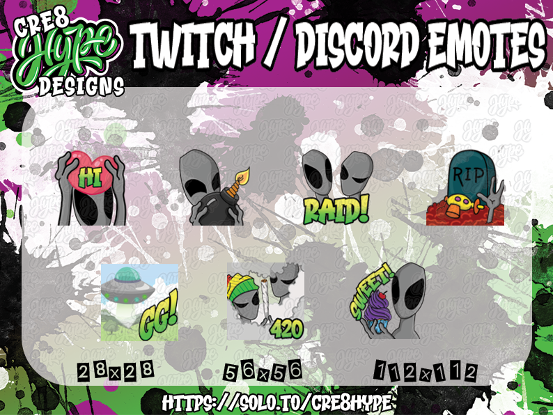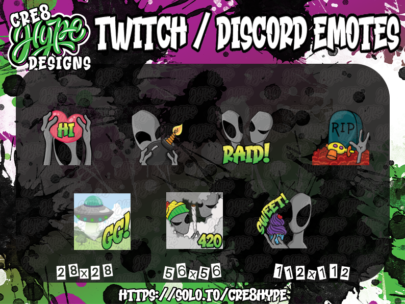 Unleash the cosmic charisma with our extraordinary bundle of 7 meticulously crafted alien emotes. Elevate your Twitch, Discord or Kick presence effortlessly!